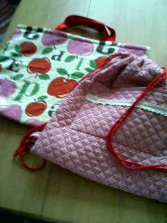 表よりも裏地が可愛いので、手提げは裏返してパチリ。