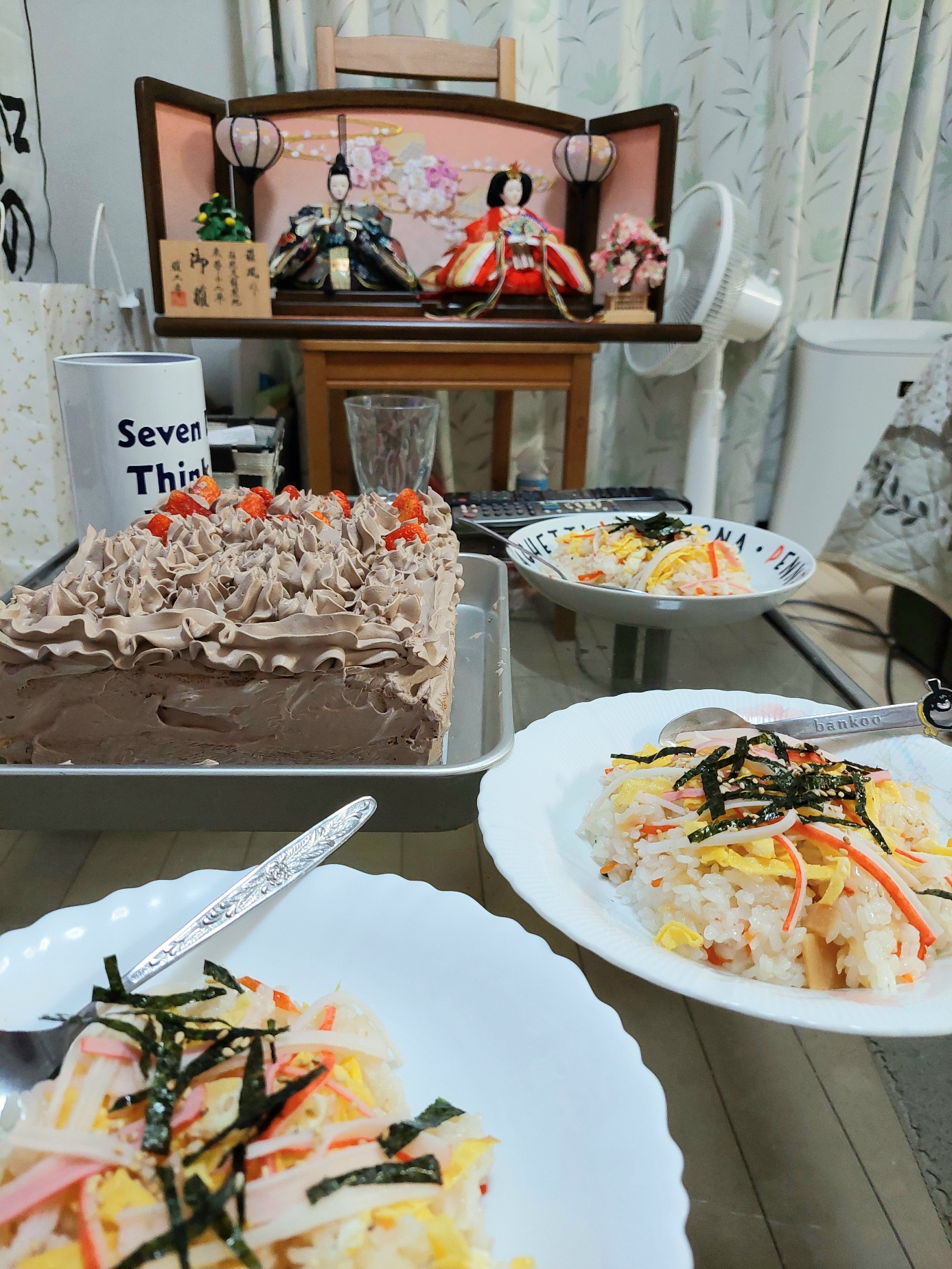 ひな祭りパーティーをしましたちらし寿司とケーキでお雛様を出すスペースを確保出来ず、今年も2人だけを出しました一番上だけでも立派だな屏風が素敵でっかいケーキは業務スーパーでスポンジケーキとクリームを買って、イチゴも安く買えたので家で作りました質より量の我が家です半分は中にバナナを入れましたバナナの方も美味しかった間違えてバナナを中に入れた方にイチゴを乗せてしまった…やっちまった!お雛様とMISAKING 何故かMISAKING は刀を構えています雛人形がしまってある場所に一緒に入っているKちゃんが師匠に結婚式でもらった刀がしまってあって、それを気に入ってずっと触っていました(笑)お雛様、そんなMISAKING ですが幸せにしてやってください!