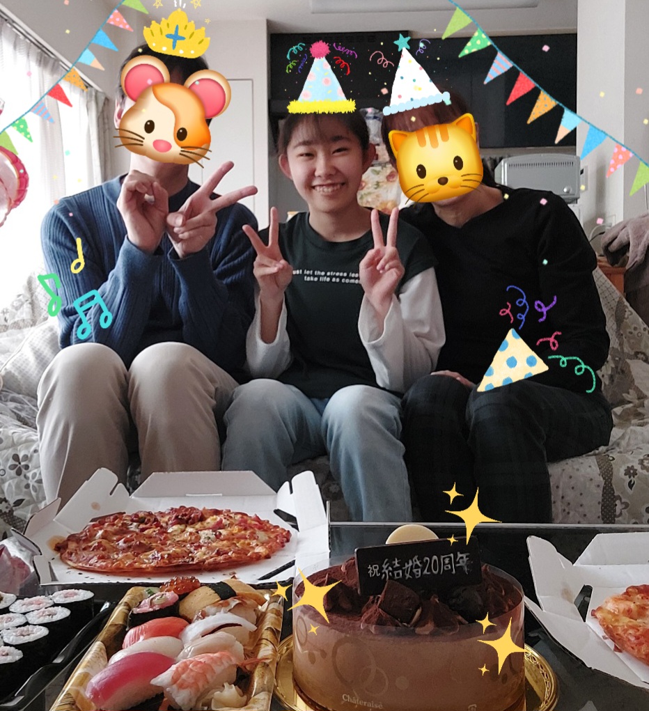 今年は結婚20周年です記念すべき20周年は、いつも通りケーキとピザとお寿司でパーティーです(笑)せっかくだからケーキだけでもおしゃれな物をと思って、ケーキ屋さんを梯子したのだけど、予約でもしていないとパッとするものがなく、いつものようにMISAKING の好きなチョコケーキになりました美味しかったからいいのだけどねチョコプレートを置くときに指で年の所を触ってしまい、ちょっと擦れてしまった…残念!しかしよく20年も続いてるね~と、2人でしみじみと話していました(笑)あと5年で銀婚式だ~あと30年で金婚式だ~生きていられるかな~と…
