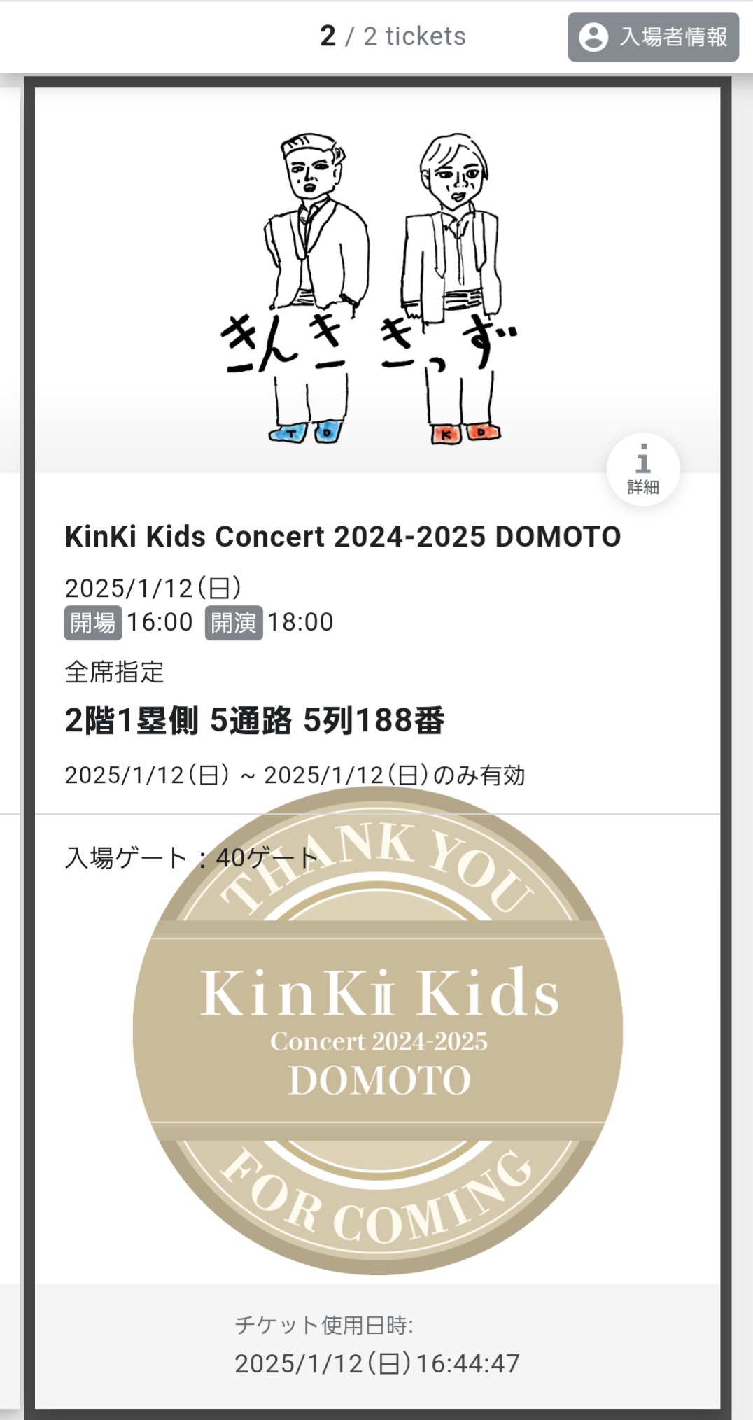 12日にKinKi Kidsのコンサートへ行ってきました
