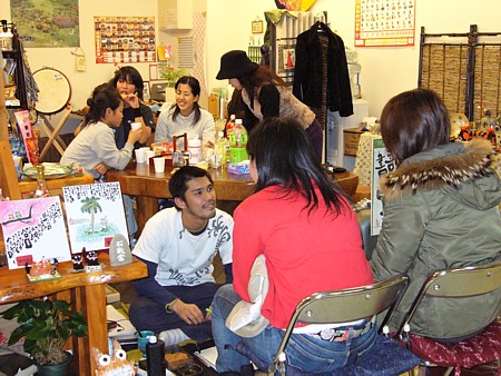 この際、ありがとうの先取りをしてしまいましょう今日はくくる屋で販売するエコバックの印刷してました。だから全然正月っぽくもなく寝正月にもなりません。明日もまだまだやる事が~~~~。(くくる屋自体は明日から営業~)あーそうだそうだ。2007年が明けたと同時に父親が仏壇の横に「今年はこれで行く!!」と張り紙をしたのが一番の年明けっぽさがあった。張り紙には「2007.1月1日から禁煙」の文字が!母と私、福がボールをくわえてくるのと同じ位(爆)父に拍手喝采。超ヘビースモーカーでどんだけ文句言っても辞める気はなかったのに。えらいぞ~~~~。今かなり禁断症状が出てる様子・・・いつまで持つかなぁ~。----------------------くくる屋イベント情報---------------------------1月27日土)、28日(日)1日限定20名(2000円位) 11時~19時路上詩人の「上山光広」君がくくる屋で書き下ろしをしてくれます。お一人お一人とゆっくりお話をしてその人の世界を文字にしてくれるそうですよ!!私の絵とみつひろ君(←みつひろ君もみっちーと呼ばれてる)の文字でWみっちーのプチ個展も同時企画。(私が出来るか。。。)1月30日(火曜)、南ぬ風まーちゃんによる三線教室 18時30分~20時 1500円 要予約まーちゃんがくくる屋三線教室で指導してくれます。唄もきけるはずです。どなたでもご参加OKです。全く初めての方はミニ三線体験をなさってから参加されると分かり易いと思います。--------------------------------------------------------------------------くくる屋では店内で出来るイベント人を大募集です。リーディング、占い、カウンセリング、手芸、手話、沖縄方言講座等々可能性のあるものなんでも。1回限りでも定期的でもかまいません。但し!大きい音出し、水を沢山使うものは出来ません・・・(スミマセン)何かを思いついた方(*^_^*)みっちーまでご連絡を宜しくおねがいします。