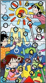 先週の私の答えは合っていたようです。よかったです。A.間違い探し…E(A:3 B:4 C:4 D:4 E:2 F:5 G:5 H:3)A 太陽の左上のコロナの向き 太陽の内心円の左下の形 左下の青い雲の位置 B 上の青い雲の左端の形 男の子の眉毛の形 男の子の服の襟の形 右上の白い雲の左端の形 C 白い雲の上の左側の突起の長さ 男の子の頭頂部近くの髪の形 富士山の左端に縦に並ぶ2つの青い短冊の上下関係 富士山の頂上にかかる青い短冊の有無D 富士山の右端の青い短冊の長さ 梯子の長さ 男の子のズボンの膝の部分の形 男の子の靴下の有無E 男の子の右肘近くの青い短冊の長さ 女の子の左側の髪飾りのはの位置F 富士山の山頂の雪の下部の形 梯子の左側のパイプの黄色い輪の有無 梯子の段にかかるS字フックの端の長さ バケツの中のタオルと赤ペンの位置関係 黄色い三角形の長さG 黄色い紙の上に出ている女の子の左手の指の数 女の子の洋服の襟元の形状 男の子と女の子の間の黄緑色の部分の端の形 左下の青い紙の欠けの有無 女の子のスカートの幅(プリーツの数)H 黄色い紙の下部の欠けの形 タオルの端の形 バケツに重なる黄色い短冊の太さB.ネット漢字…ながつき(長月)くせいうなやつかんどしまんいむつしがらきぶめいくいんたいきんけきC.数独…7┏━┯━┯━┳━┯━┯━┳━┯━┯━┓┃9│3│8┃6│1│4┃5│7│2┃┠─┼─┼─╂─┼─┼─╂─┼─┼─┨┃7│6│2┃5│9│8┃4│1│3┃┠─┼─┼─╂─┼─┼─╂─┼─┼─┨┃1│5│4┃7│2│3┃6│9│8┃┣━┿━┿━╋━┿━┿━╋━┿━┿━┫┃5│9│3┃2│8│6┃7│4│1┃┠─┼─┼─╂─┼─┼─╂─┼─┼─┨┃2│7│6┃1│4│9┃3│8│5┃┠─┼─┼─╂─┼─┼─╂─┼─┼─┨┃8│4│1┃3│7│5┃9│2│6┃┣━┿━┿━╋━┿━┿━╋━┿━┿━┫┃3│2│9┃4│5│1┃8│6│7┃┠─┼─┼─╂─┼─┼─╂─┼─┼─┨┃4│1│5┃8│6│7┃2│3│9┃┠─┼─┼─╂─┼─┼─╂─┼─┼─┨┃6│8│7┃9│3│2┃1│5│4┃┗━┷━┷━┻━┷━┷━┻━┷━┷━┛