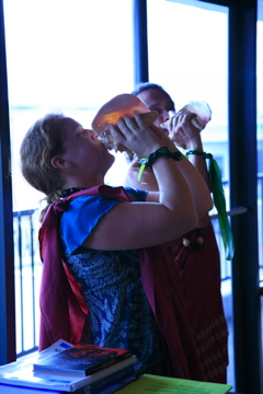 お祝いの儀式ハレアカラ山から 海から古代ハワイイの祖先から 神からマナを授かります。ホラ貝の合図ではじまりますブレッシングの後はみんなで輪になってハグ旗の授与ピースフラッグは入り口のパーテーションに重ねて飾られました^^陽が透けてきれい☆1階から続く階段にもマナが招かれるように ティーの木を飾りました。みんなで記念撮影!Mahalo Hale a ka laMahalo Mauiありがとう ハレアカラありがとう マウイさんMahalo AkuaMahalo na aumakuaMahalo na kupunaMahalo na KumuMahalo na alaka'iMahalo Ia'uありがとう 神さまありがとう 家族の守り神ありがとう ご先祖さまありがとう クム(先生、源)ありがとう リーダーありがとう 自分自身に!ぱいぱい ぱいぱい ぱいぱい ぱいぱい (祝福の拍手の音と共に)Aloha