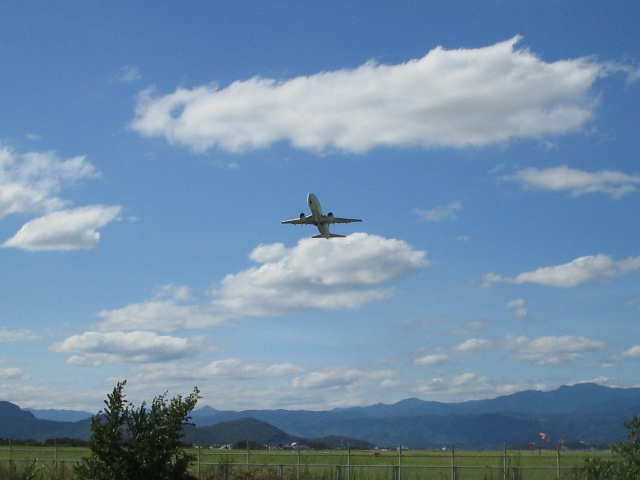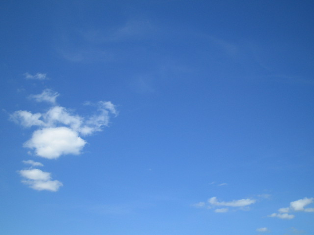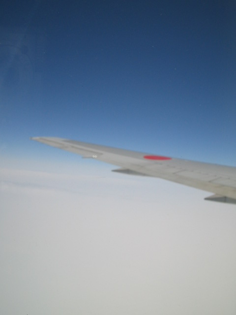 雲の上見渡す限り青く果てしない地に足の着かないフライトは怖いけどこの青い世界の中で無になれる ・・・・・・・・・・・・・・・・・・・・・・・・・・・・・なぁ~~~んて事はありましぇん・・・怖い怖い怖い怖い!!!降ろしてくれ~!!!無になんかなれません。機体が揺れるたび、遺言書を書こうかと考える・・・。「母様~~!!貯金少ないけど使ってね~!」・・・・って・・・ 窓の外を見る勇気もありましぇん・・・・。せめて空の写真をと頑張って撮りました・・・ 怖かったけど、空の色は本当に綺麗だったな・・・・ 雲が全くない晴天の日に原っぱで大の字になって寝転んでみる。すると天と地が反対にひっくり返って「空に」落ちそうになる 空・・・・・空は大きく、そして広く包んでくれる。そんな空のようにコウキは育って欲しい