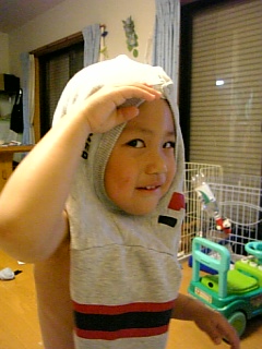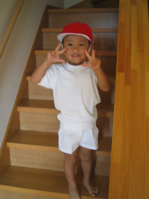 今日は保育園の運動会予行練習でした。いつもは朝起きてこないコウキが、自分で2階から降りてきました。めずらしい・・・いつも起きてくれよ・・・・さぁ、着替えです!! ピ・・・ピースがかわええ~~~~~~っ! 昨日の朝、体操服を持っていくと担任の先生が「あれ~・・・、下のズボン黒??」と言ってきました。うちの保育園は決まっている体操服はなくって売っている体操服か、上は動きやすい白のTシャツ。下は無地のズボンとなっています。去年もそうだったので、ズボンは無地のものを持って行きました。そしたら「体操服はだいたい白ながやけど。」またまた言われちゃいました・・・・「え~?そうなんですか???でも去年も白Tシャツと 無地のズボンでよかったですよね??いつから決まりができたんですか?」と聞くと、「え~~?そうかね??」・・・・・・・・・・・・・だってさ・・・。また変更の貼り紙してあったのか!? それとも手紙連絡が!?!?!?!?!?!?知らんぞ知らんぞ!!!!!それを聞いて大急ぎで体操服を買いにジャスコへ・・・だってコウキ一人体操服がないのってかわいそうだもの・・・・でもおかしいなぁ~・・・そんな手紙きてたかな~??しかし体操服高いな!!!!予行練習と本番の2回しか着ないのに・・・・ で、体操服も買ったしくつろいだなぁ~と・・・・夕方コウキを迎えに行って、家に着き園からの手紙を見ると・・・・運動会についての注意事項があり・・・・そのなかに、こう書いてありました。 「当日は体操服か、動きやすい白のTシャツ、ズボンは無地」と、書いてあった。・・・・・・・・・・・・・・・・・・・・・・・・・・・・・・・・・・・・・。・・・・・・・・・・・・・・・・・・・・・・・・・・・・・・・・。・・・・・・・・・・・・・・・・・・・・・・・・・・・・・・・・・・・・・。・・・・・・・・・・・・・・・・・・・・・・・・・・・・・・・。だれですか??黒の無地に文句をつけたのは・・・白の体操服にだいたい決まっていると言ったのは・・誰やねん・・・・ んで、今朝保育園について教室に行くと先生が体操服姿のコウキをみて一言。「あれ~、買ってきた~??」・・・ですと。「ごめんよ~、昨日の手紙みてしまったと思って電話しようかと思ってたけど、もう買ってきたんやね~。でも、やっぱり白で統一したほうがいいやろ、体操服は~」 ハィ~~~~~!?!?!?!?!?なんだかよく振り回されるなぁ・・・・。