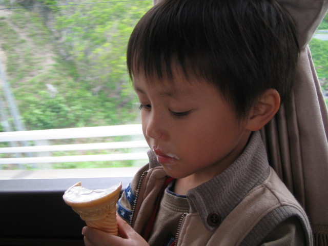 こうきはアイスが好き・・・・好きと言ってもこのコーンのとこが・・・・好き巻いてるバニラのとこはあまり食べないのだ・・・。でもコーヒー・カフェオレ系は食べる・・・。私もカフェオレ系が好きなのでいつも親子で争奪戦である。親なんだから譲ってあげなよ。と言われるがそれはできないのだ・・・。でもコーヒーは飲めない母です・・・・子供か!!??そんな母に代わり、ブラックのコーヒーが好きな晃輝・・・大人か!!?? は~~~っははははははあっはいや~~~、実に頼もしい息子よ!!成長が楽しみだぜ・・・・ん????何か向こうの方で私を呼んでいるようだ・・・・「なに~~~~??」晃輝「・・・・・・・・・・・・・・・・・・」「え~~??聞こえん~~」晃輝「・・・・・・・・・・・・・・・・・・・・・・・・」「聞こえん~~。こっちにきてゆうて!!」ドタドタドタドタドタドタドタドタ「クソババァ~~!!!!!」「!?ハァ~~!? クソババァてなんじゃい~~!?」ゴルァ!!・・・・・・・・・・・・・・・・・・・・・・・・・・・・・・・・・・・・・・・。ひどいひどいひどいひどい!!!!!!!!!!!!!!!一生懸命育ててきたのにクソ・・・・・・ババァ・・・・・だなんて・・・ 「だれがそんなこと言ったん?」と聞いてみると、どうやら保育園のお友達が言っていたらしい・・・どうやらどこのお子さんもクソガキなのね・・・?失礼・・・・