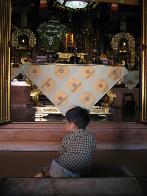 今日は母とコウキと3人でお墓参りに行きました。でもうちはお墓ではなくて、納骨堂に預けているので納骨堂のあるお寺へお参りに・・・コウキさん・・・・おパンツ見えてますよ・・・ふざけてなかなかお祈りしないコウキ。でも線香好きのコウキは 線香に火をつける時だけ真剣 父の部屋には誰かがもうすでにお参りに来ていてくれている。誰だろう?誰かに覚えていてもらうことが家族にとってどんなに嬉しいことか・・・・。 父の遺骨が納骨されているお寺は、父が育った海の町にある。こんな風に笑って楽しく暮らしていたのだろうか? 父が亡くなるまでお墓、仏壇にはあまり近寄らなかった私。私が生まれたときには祖父母はすでに他界し、知らない存在。「身近」に感じなかったのだ。でも身近な存在の父が亡くなり、お参りや仏壇に拝むことが増えた。母もそうらしい。何かあったら仏壇の前で父を呼ぶし、相談もする。もちろん返事が返ってくるわけはない。でも、安心するのだ。 今日はパパの好きなお菓子やお酒を買って行った。スーパーで買い物している時、子供用の買い物かごにいつのまにかお菓子をたくさんいれていたコウキが登場!「なんでそんなに買うの?」と聞くと・・・「ジイジに持って行ってあげるんだよ」と言うコウキ。いつもなら「返してきなさ~い!!」と怒る私・・・。でもそんな優しいこと言われたら怒るわけにいかない・・・。コウキ・・・・あんたはいつのまにか大きくなったね・・・お寺から帰る頃には 「ジイジ、また来るきねお留守番しよってね」 ほんとに父にコウキをみせてあげたかった・・・・父もコウキに会えなかったことが一番の心残りであろう・・・。 ほんと・・・ジイジそっくりだな・・・・・プププ 「ジイジ~!!また来るきね~!!!!! お留守番しよってよ~~~~~~!!」