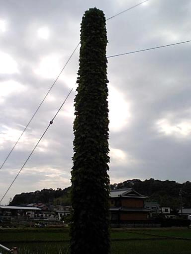 なんじゃこりゃ? っと、いきなり画像^^;こんにちわ~♪ ひろリンです^^今朝、ワンコとのお散歩中と~っても気になった変なモノ今朝の雨空&逆光でちょいと見にくいですが。。。よぉ~く見ると、 現在も大活躍な電柱を、すっぽりツタが占拠! 大きなお世話だが、こんなんで、イイんだろうか???断線とか漏電とか、、、電力供給に支障はないんだろうか?っと、ちょっと心配になったワタクシでしたみなさン家の周りにも、ヘンテコ不可解なモノってありませんか~?