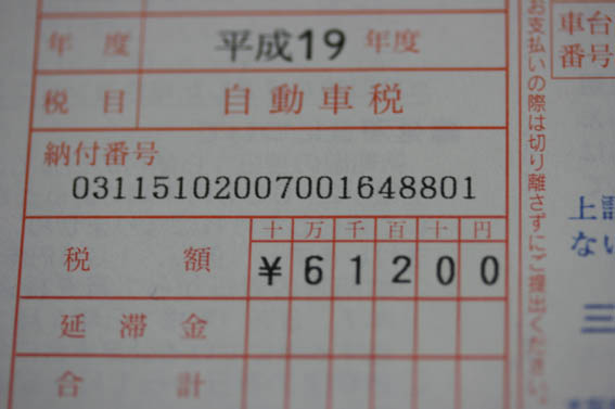 皆さん、こんにちわぁ~~~かわちゃん@店長でございますです届きました・・・・そうあいつが届きました・・・・国民の三大義務勤労・納税・教育その中の1つあいつがやってきた・・・・車1台で この税金・・・高い!高すぎる!もぉ~~~~どんだけぇ~~~~
