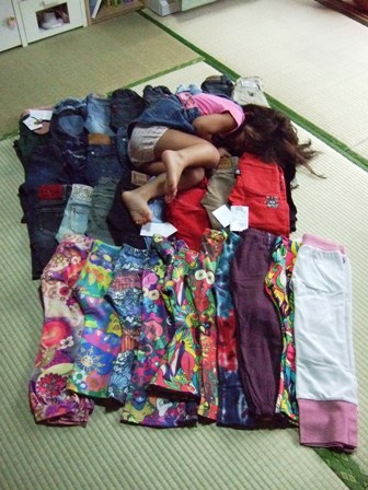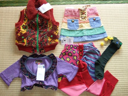 大量の交換のお品が届きました。どっさりあります しかも可愛い~お品ばかりですHARU/HARU様とは2回目?3回目?の交換です。RONIのブーツがバックアレイのJKかな? ラメラメしてて可愛いです~ 次は、かりなつ様からのお品です。ブーホーのジップアップがな、なんとバックアレイのJKです届いてびっくり、とんでもない金額差だったのに何と言う太っ腹興奮しすぎて、鼻血出そうです 次は、tarachan1114様から届きました福袋級の交換です ←なんでこれだけ画像が小さい?この4点が 凄いよぉ~派手でしょ~ 可愛いよね~ 好きそうでしょ~私プリキュアのティッシュは速攻で娘に持っていかれました 最後は彩子様からのお品ですこの3点がブーホー、バックアレイ、ナチュブに変身です とっても可愛いお品ばかりが届きました。みなさん、マッハのスピード(ふ・古い?)で発送してくださってありがとうございます。これで、心置きなく4日から帰省できます HARU/HARU様 かりなつ様 tarachan1114様 彩子様ありがとうございました 全部、着画でご紹介したかったのですが・・・ 「暑い」と拒否られました・・・ごめんなさい。 ついでに、日曜日ブーのサンプルセールに行ってきました。旦那と娘は「レミーのおいしいレストラン」を観に行っていましたこれ 戦利品・サンダル 100円×2足 ・バレエシューズ 1500円・ハイソックス3足 1000円 ・ワンピ(今期物)60%off 定価13000円位?・水着 1900円 ・プールバック 1900円 ・長靴 800円 こんだけ買って、13000円ちょい。 前の日まで全く行く気はなかったんだけどね・・・前の日にプールに行って、プールバックごと忘れてきちゃったから・・・水着とプールバックがあるといいなぁ~と思って・・・水着とプールバックだけを買いに行ったんだけど・・・はい。 水着110センチ、大きすぎて万歳したらおっぱい丸見えですぅ~身長105センチの子供には何センチの水着買います?親に似ず細いのは細いんだけど・・・・どう頑張っても今年は無理っぽい無事にプールバックも中身も発見されたから、来年用ということで 交換会ですが8月4日から20日頃まで帰省のためお休みします。よろしくお願いします。