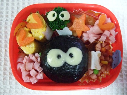 娘の幼稚園の途中入園が始まって5日目毎日、楽しみで仕方がない様子どうなることかと心配していたけど、親の心配なんて・・・そんなの関係ねぇーと言わんばかりに、楽しんでいるようで一安心だぁ今日は週に1度のお弁当の日で、母としては気合入りまくりの空回りで・・・はい・・・・まっくろくろすけの目・・・・とけかかってます・・・・・ごめよ甘い卵焼き。エビフライ。お花のハム。お花のウインナー。ブロッコリー。マックロクロスケおにぎり。デザートは巨峰。娘のリクエストがマックロクロスケだったから、簡単に作れたけど・・・「今度はアリエルお弁当がいい!」なんてこと言ってるしアリエルなんて作れませぇーんお弁当箱が空になっているか、帰ってくるのが楽しみ旦那も金曜日だけはお弁当持たせようかな・・・・娘と同じキャラ弁でね