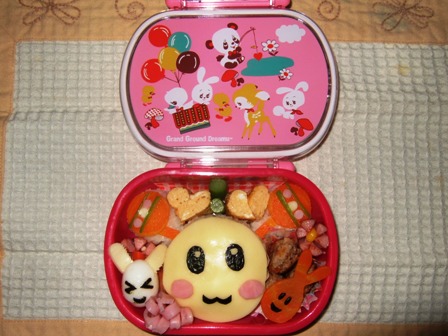 いつも仲良くして頂いている、ちょめりさんの【第2回 旅行行ってきます杯 カウプレ】に当選しましたネネちゃん、選んでくれてありがとよぉ~ おばちゃんうれしいよまぁ、いつもいつもちょめりさんは我が家が今、必要としている物を知っているかのような見事なチョイスですあなた凄いわぁ~スティッチの青いお弁当箱を使っている娘ですが、「ピンクのお弁当箱が欲しいの」と言っていた矢先だったのよっグラグラムゥ~のお弁当箱 可愛い~使うのがもったいない~と思いながら、本日、週に1度のお弁当dayで持って行きました。中身が詰まっている変なお披露目ですんまそんはい、誰が何と言おうと・・・・うーたん ですっ黄色いオバケではありません。中身はともかくお弁当箱が可愛いから、何となく可愛く見えるのでは?この可愛いお弁当箱に合うお弁当を作れるようになるのはいつの日か・・・遠い目・・・ 可愛いお弁当箱を持って、今日も幼稚園へ行った娘ですが、ラブレターの彼が教室にも入らず娘をお出迎えそして今日も可愛いラブレタ~をもらい、「今日も僕と一緒に遊ぼうね」と手をつないで教室へ入っていきました~ 凄いね3歳児こんなおませな娘が使っています。ちょめりさん毎度毎度ありがとねぇ~3日間は足向けて寝ません
