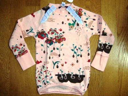 先日のポッキーさんの「イモムシ」鬱袋から、交換していただきました。うちから嫁いだのはこれ 唯一、イモムシ色じゃなかったピンクのママロン?この2点が ぬわぁんと 大好物のバックアレイジップアップにオマケにブーの靴下までうれしすぎです。 この柄が好きで今年の2月の結婚式に同じ柄のワンピ着せてます。鬱袋が大当たりになっちゃいましたコニゴマさま ありがとうございますもぉ~なんとお礼を言っていいやら、またド派手な交換品が出たときは是非、我が家へお願いします2回目もありますように・・・・・ありがとうございました。