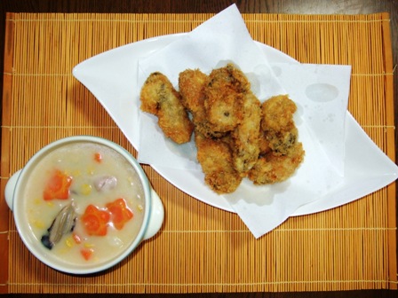 珍しく本日2回目の日記です。 ちょめりさん、ばんざいねこさん ご飯の用意はいいかな?娘のリクエストにより牡蠣グラタンが牡蠣シチューへ変更。これ1人前・・・・・ 写っていないが、ご飯とサラダと何故か大学芋~♪生牡蠣、蒸し牡蠣はお腹いっぱいで食べられないからナシね。肝臓、絶好調! 今なら1升飲めるよきっと。あんまり美味しそうに見えないけど、美味しかったよん カキフライ一番好きな食べ物かも・・・・私。殻をむくのに手が血だらけになっても好きだぁ