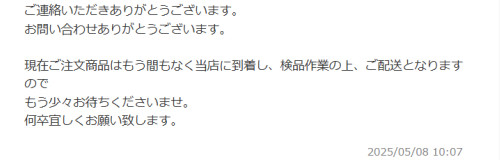 ずーっと注文して待っている商品があります。GWに使ってみたかったので3月に注文してました。海外からの取り寄せなので4週間から7週間の納期設定。まあそれでも届くなら。 だけど一向に届かない。2か月たったので状況を問い合わせてみました。 するとこんな回答。 このときすでに半信半疑。なぜって、お客様の声が激悪のショップだったから。誤品が届くとか、届かないとか、問い合わせても無視とか。 これは怪しいかもな・・・。 だけど、海外取り寄せ品なので多少の納期の遅れはあるかも。それに、もう間もなく到着の予定らしいし。 そこからまたしばらく。 これはいよいよ怪しいな。再度確認したら、一応レスポンスはあって。3週間も到着ありきのコメントは胡散臭い。 そば屋の出前確定。 まあ、納期はいいや、待てば来るんでしょ、ひとまず。 なんだけど、たまったメールをたまたま眺めていたら、「キャンセル」の文字が飛び込んできました。てっきり最近注文した商品の何か、かと思ったら、まさかのショップとやり取りしてたやつ。 おいおい、間もなく届くとか言ってなかった? もう1回、ショップに問い合わせてみよう、とショップのリンクに飛んだら、 いきなりの閉店案内。 なんか、評判も悪いショップだったので、自分のようなケースが多くて、毎日問い合わせ、クレーム処理で嫌になったんだろうな、とは思います。だけどタイミング的に自分の問い合わせがとどめになった感じもしてすごく嫌です。 扱ってる商品はほんと面白い商品が並んでた気がします。そういうのを扱ってお客様を喜ばせたかったのかな、と思いたいけど、ショップの住所とか調べるとまさかの近所。愛知のお店。すくなくても小売業じゃない業種の会社が商ってました。 ビジネス拡大に意気込んだものの、リサーチ、リソース、適性が合わなかったんだと思います。 ・・・。 スクーターを届いたら散歩でそのショップを見に行ってみようかな。悪趣味?お金、返金されるのかな。金額は多少ですが、気持ち悪い状況です。