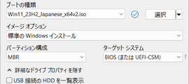 我が家で唯一Windows11化できていないレッツノート。CF-B10EWCYSとかいうやつ。2011年製!これ、ディスプレイも大型でキータッチもよくてほんとお気に入りでした。 ただ、最後のほうは本当に調子を崩しやすくてWindows10の時代でも起動不良になりやすかったです。更新が入るとロールバックしだしたり。遠因はなんとなく交換したHDDとの相性という気がしてました。 なので11化したらいろいろ調子がよくなるかも、と11化にチャレンジしてたんですが、レガシーBIOSということで却下されてました。さすがにあきらめてお蔵入りさせてたんですが、ふとしたことからもう一度使いたくなりました。 ひとつは下の子がノートパソコンを欲しがってきたこと。もうひとつは今メインで使ってるCeleronのmouseノートが非力。マルチタスクに弱いのでややストレス。第2世代のモバイル用CORE i5のレッツノートでは感じていなかった一瞬フリーズがあります。 レッツノートをWindows11にできたら、まだ動作が軽いかも。昔みたいにブルー画面頻発しなかったら時代が許すまでレッツノートを使って、子供がノートを欲しがったらmouseノートを貸そうかな。 そのためにはもう一度11化にチャレンジしないと。 で、昔あきらめてから少し時代が流れたので新しい情報がないか、Windows11インストール方法を検索。「レガシー BIOS Windows11インストール」 で調べたら、できそうだな・・・。 定番ソフトrufusでパーティション構成をMBRにするとBIOS仕様でインストールできるとか。詳しいことはわからないけどチャレンジしてみます。 落としてくるイメージはとりあえずハードルをさげるため23H2で。 これで走らせると・・・、お、進んだ!昔はレガシーBIOSなので却下されてましたが。 これは完走できるのではー。 ドキドキ・・・。進んでいそう。どこで中断するか・・・。 数回再起動をして、どんどん進みます。なんかいい感じ。 ほぼ走り終わって、更新プログラムを導入し始めました。一気にそこまで処理するのか。それはそれで確かに楽。助かるわー、と画面をみていたらまた再起動。 出てきた文字が自動修復!!不穏すぎ。 で、あちゃーロールバック。それも無理で再起動を繰り返すループに。更新プログラムが先進すぎてとどめになったか。 やっぱだめか。 それからひと晩たって、ふと思いました。(インストール途中でwi-fi接続させるけど、そこのタイミングではネットにつなげなければ更新プログラムを読みにいかないので、素のプレーンな11をまずはインストールできるのでは。そこでハードルがさがらないかな。) 祈るように、wi-fi設定をスキップ。ローカルでインストールを進めていくと変化あり! この画面までくればほぼ成功では。 おーーーー、Windows11の画面に! 導入成功! 使い始めしばらくは画面解像度が荒かったけど、しばらくしたら適当なドライバが当たったようで、フルHDサイズになりました。 ほんと長かった・・・。半ばあきらめてましたがついに。 とりあえず動作が重いとかは感じません。サクサクです。あとは更新プログラムの準備ができて導入したらどうなるのか、それか同じやり方で24H2をいきなり適用してみるのもありか。 ふぅ・・・、マジエンドロール。 これでうまくいけば子供用にノートを買わなくてすみます。レガシー救済にもほどが。だけど達成感ありまくりです。