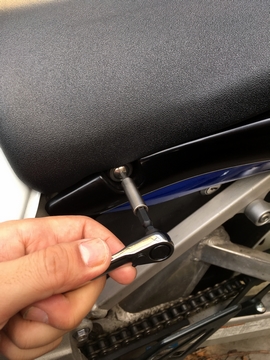 この作業中、嫌ことに気づきました。タンデムシートの破れ。これ、前からあったかな?