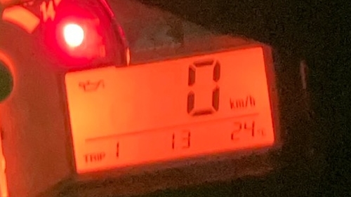 とりあえず40キロくらい走ったので再び満タンにするために給油。給油してキーオンにしてみたら、やっぱり点いてない。それも両目とも、ってのが気になる。