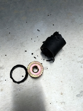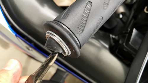 うっ・・・、心配した通り、中のラバーが残ったまま。夏場に外した時は普通に外れたんだけど、寒い時期だとボルトを緩めてもラバーの形状は変わらないからか、ハンドルの中に残っちゃいました。