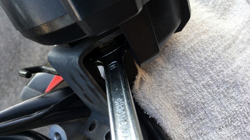 ハンドルはケーブルがたくさんつながっているのであまり動かせませんが、メーターマウントの締め付けボルトを外します。