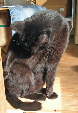△日なたで毛づくろい昨日、伸びに伸びていたヤマトのツメをようやく切る。ちなみに正月中、新年会で来客が多数あった日は、お客さんのヒザに乗ったりして愛想を振りまいていた。相変わらず人見知りしない猫である。飲食店にでもアルバイトに遣らせたら「看板猫」としてけっこう稼げるかも・・・などと思った。