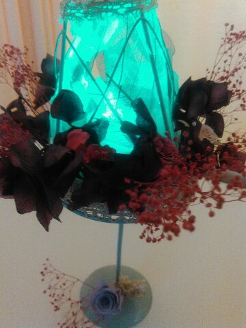 昨日の家内の作品に100均のLEDライトを入れて点灯してみました。