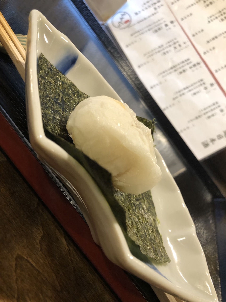 赤身、中トロ、ホタテ、鯛、ハリイカ(普通はコウイカって呼ぶよね)、シマアジ