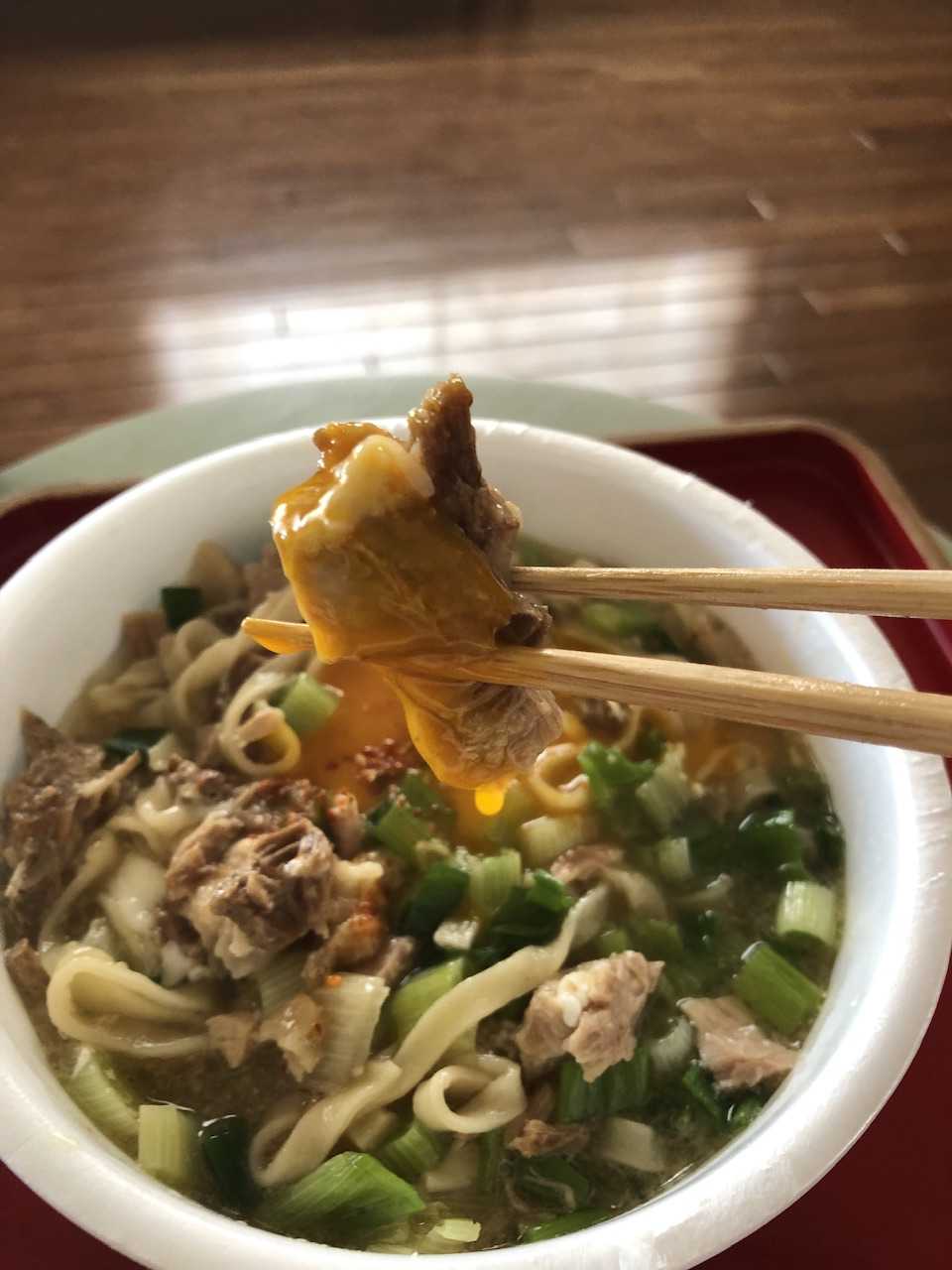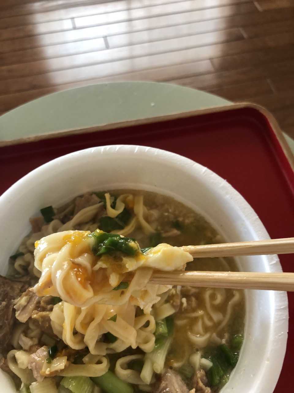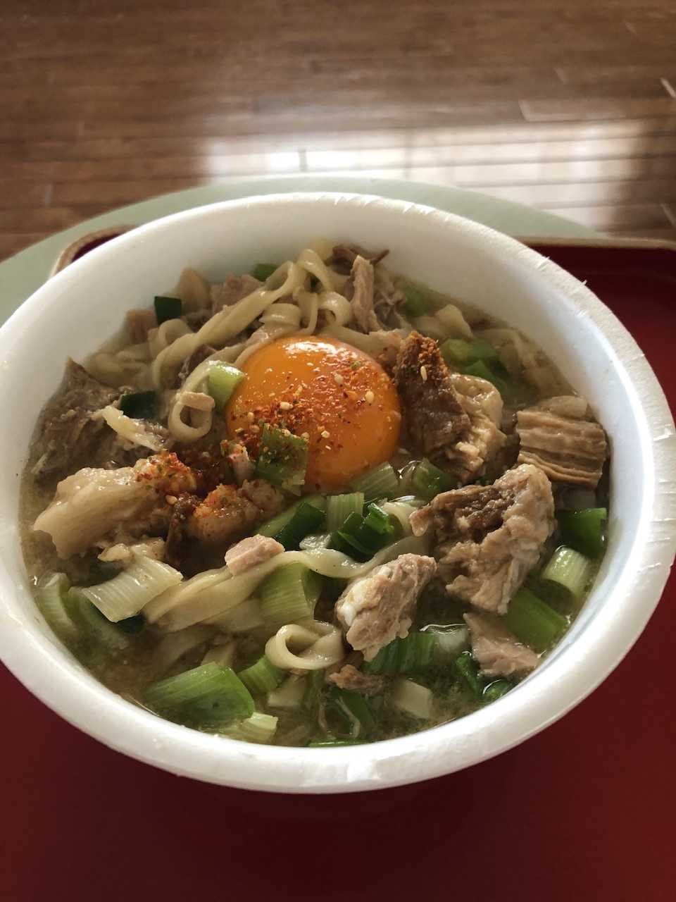 そうか、いつもなるほどなぁ、と思うのですが、単にお湯を入れるのではなく、チャーシューとかを煮たスープをぶっかけるのですね。