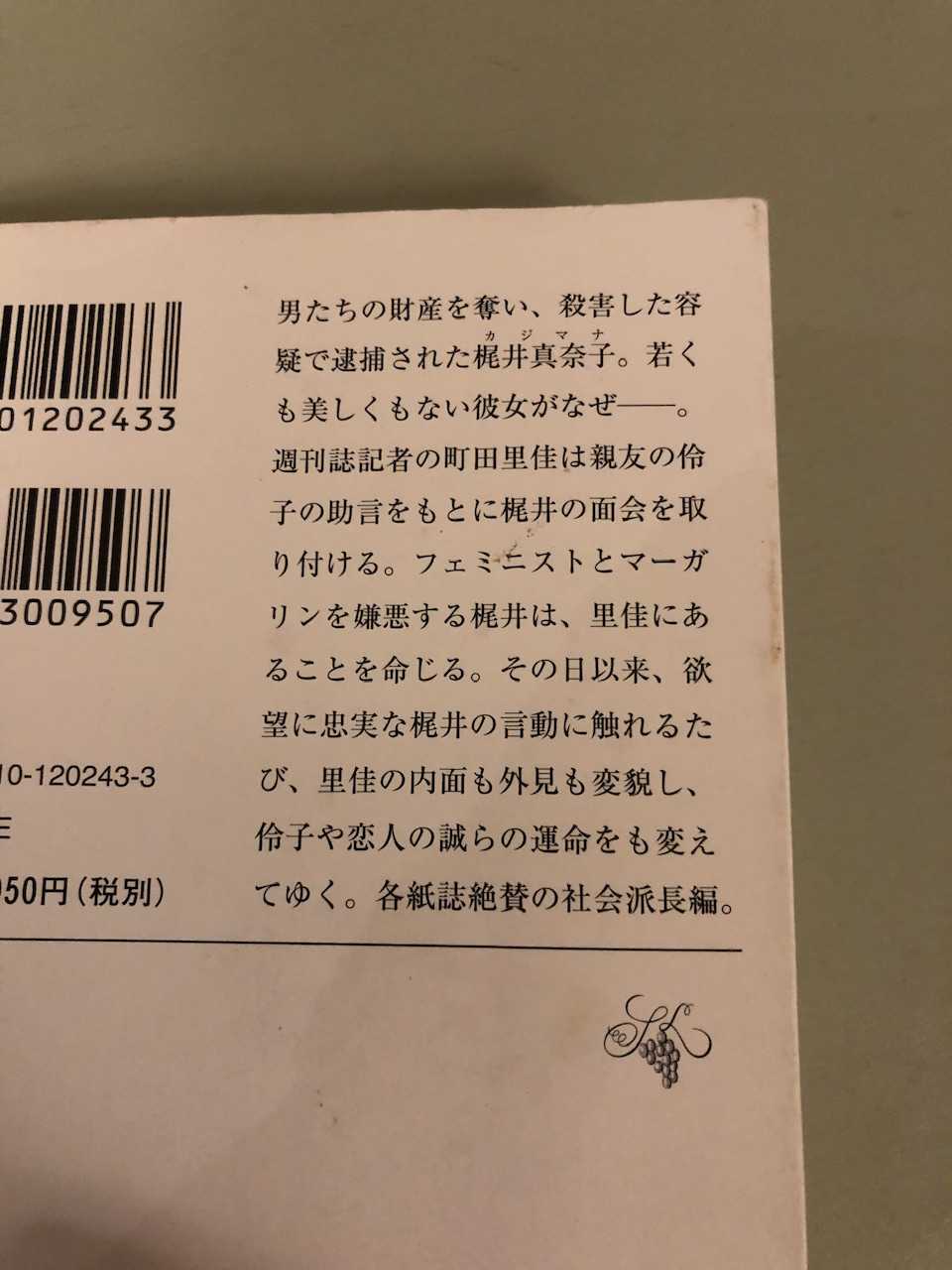 元は2007年から2009年に首都圏で発生した木嶋桂苗の結婚詐欺、殺人をモデルにした小説。
