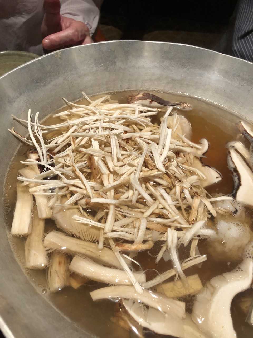 でも、傘の開いた一番デカイのを鍋に、つぼみを焼いてもらうことに。