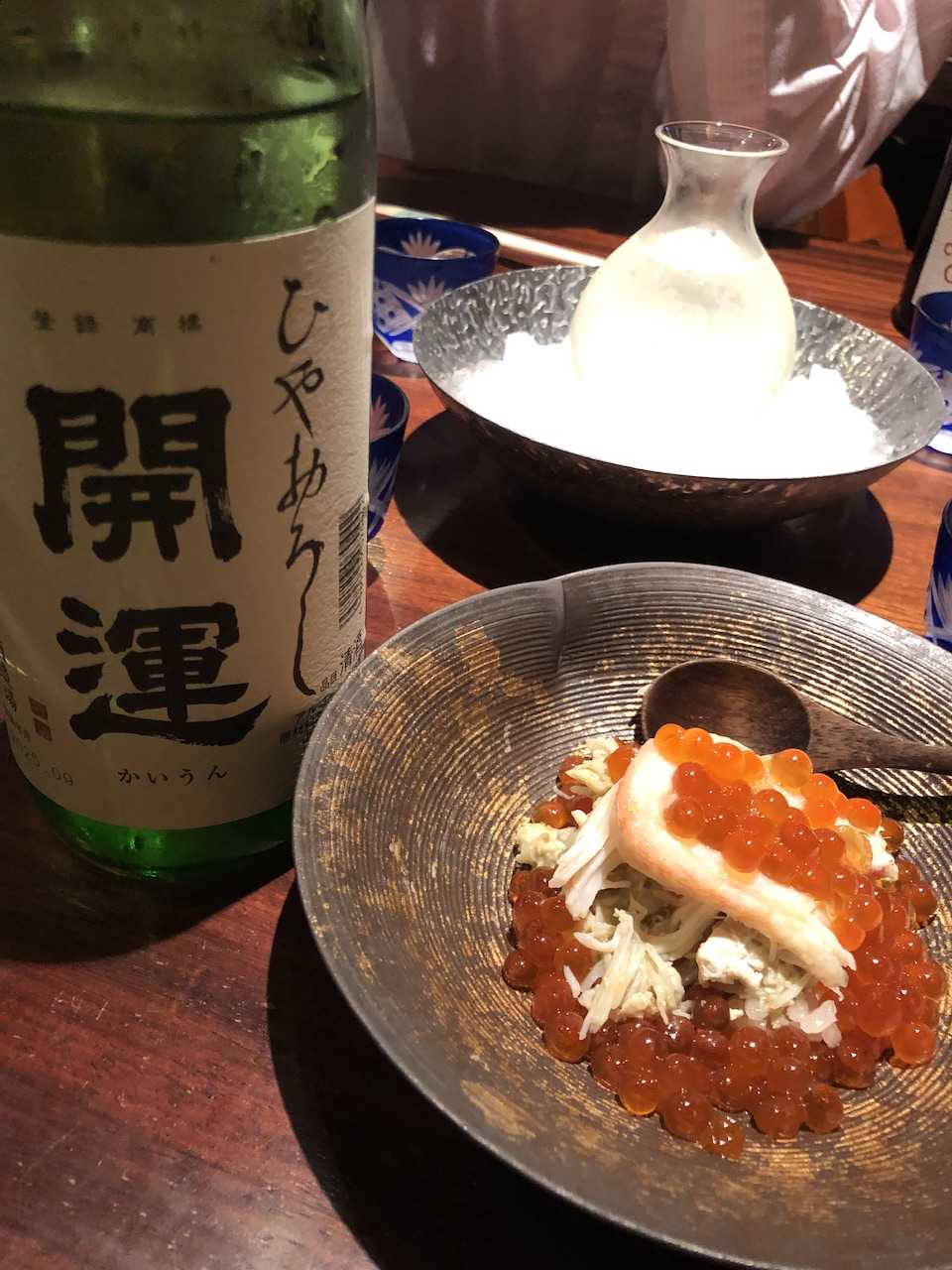 蟹は甘いしイクラはやわやわ、日本酒が進んじゃいます。