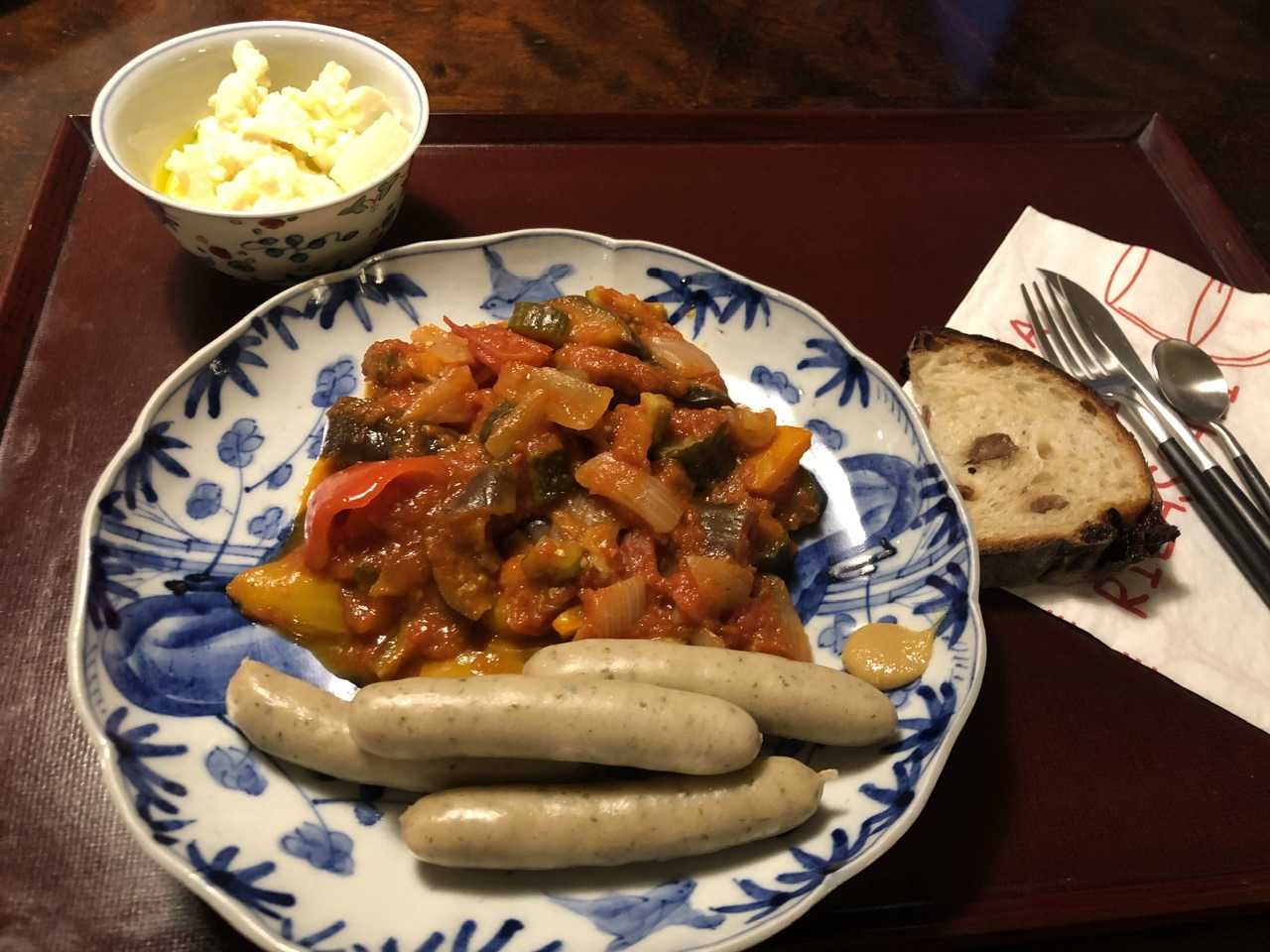 昨夜は、ハイボールの気分でした。鯛の昆布締めを食べながら、奥さんが料理作ってくれるのを待つ。普通は日本酒ですが、最初からハイボールをちびちび。上は、三枚おろしの中骨の部分を捨てるのが勿体無いので、中骨が食べられるくらいにオーブンでカリカリに焼きました。で、晩御飯スタート。庭で出来たパプリカ、茄子、玉ねぎ、ズッキーニ、ニンニクなど野菜をたっぷり使ったラタトゥイユ。・・・じゃなくて、スーパーの野菜をたっぷり使いました。おじさんが買ったばかりの須田菁華の汲み出しを使ってくれて嬉しい。梨とモッツァレラが入ってました。底を見てしまいました。角も空っぽに。コチラは普段飲みですから、大至急補給しとかないといけません。今、4リットルの徳用を売っていなくて困ってます。充分お腹はいっぱいだったのに、なぜか、急にお餅が食べたくなりました。訳判らんです。冷凍庫に在った、友人Sから正月に貰った豆餅、ぷっくり焼けて、美味しくて三つも食べてしまいました。二か月半ぶりの64キロ台です。訳の分からんデブは無し。