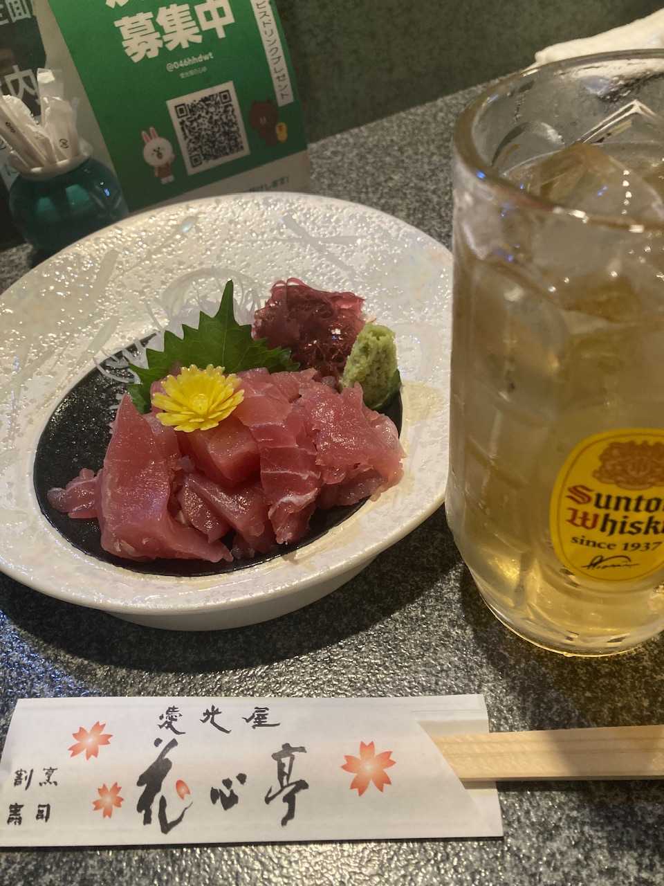 奥さんが、ミリオン座でやってる狂言師野村万作の映画が観たいと。狂言?野村万作って、違いが判るダバダ~ダバダ~のコーヒーの人?おじさん、狂言、全く知りません、たるいだろうな~と思いつつも、御意。同作は、“人間国宝”の狂言師・野村万作と、万作が磨き上げてきた狂言『川上』を舞台裏とともに収めたドキュメンタリー。650年以上にわたり受け継がれ、人々を魅了してきた狂言の第一人者であり、芸歴90年を超えてなお、現役で舞台に立ち続ける万作の人生の軌跡に迫る。・・・とのこと。御年94歳、その佇まいだけで映画に成っちゃってます。六つの顔とは、この六枚の絵の顔の事らしい。猿に始まり狐に終わる。という狂言の世界での芸に対する言葉があるそうです。それと、自分までの一門の顔かな。生まれて初めて、狂言を最初から最後まで通して観ました。「国宝」のように、この映画を観て、狂言に興味を持つ人が増えればイイですね。おじさんは、その数にカウントしなくてイイですよ(笑)映画館の前にあるお店。お供のお駄賃に。おじさん、釣狐。新鮮な鯖をお刺身で食べられます。九州のお店のようで、醤油が甘くて困りました。味噌も甘い。とっても甘い。塩で食べても良いそうです。鯖を塩で食べる、初めての経験です。確かに鰺がよく判ります。でも、鮮度が良くないと無理でしょうね。ゴマ醤油が甘すぎて、普通の醤油を別に貰いました。醤油に脂が浮いているのが判りますか?凄く脂がのった鯖でした。塩ぱらりで、ご飯を頬張る。おじさんには、刺身では脂が濃すぎるから、焼き鯖で食ってみたいな。ハイボールがね、一杯目と、二杯目で、炭酸の強さがまるで違った。一杯目、殆ど炭酸が効いてなかったのが、二杯目は強炭酸!!昨日の炭酸は使わないでね(笑)