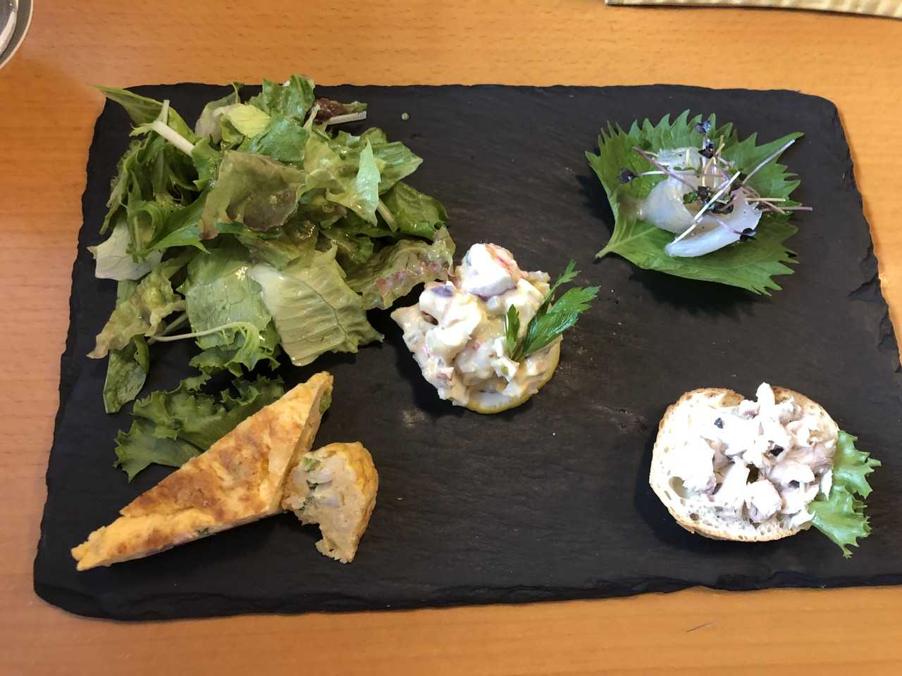 夏中仕事が忙しく、スタッフのお休みの都合も会わず、延び延びになっていたスタッフの誕生日ランチをやっと開催。キッシュ、マッシュルームサラダ、イカマリネ、たっぷり野菜などなど、おじさんなんかは、これだけでハイボール二杯飲めます。魚貝パエリア鯛の身がたっぷりです。でも、鯛の骨って硬いから、間違って食べると刺さって危ないから残さないよう取り除きます。そうすると、時間がかかるし、面倒で、ご飯がぬるくなっちゃうんです。パエリアだって、炊き立てご飯みたいなもんだから、熱々で食べたいじゃんね。肉のパエリア、これ、楽ちん、熱々頂けて美味しかったです。ただ!おじさん、パエリアって、多分何十年も食べた事無いから、これが本番もんなのかわかりません。何十年も前に食べたのは、凄い大量のオリーブオイルの中にご飯粒が入ってた記憶があります。まあ、それより、誕生日ランチが出来てほっとしました、良かった良かった。