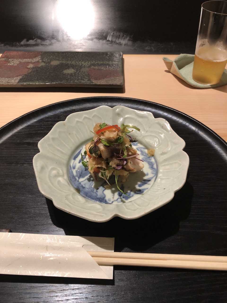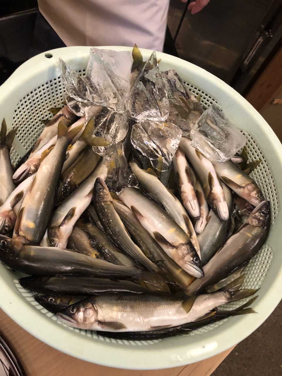 大将、快調です。お友達と二人で50数尾の釣果。川に釣り師は大勢出ているんですかと尋ねたら、亀尾島川は一般の鮎釣りの好きな人達は八月まで、九月に減り始め、この時期に竿を垂らすのは、気の字ばかりですわガハハハッて。おじさんの好きなサイズを選んで焼いてくれていますが、今までと比べ明らかにまるまるとした腹周りです。いつ見てもイイ顔してます。おじさんもこんな顔になりたい。卵も白子もパンパンでした。偶然かもしれませんが、雌の身は雄に比べてしっとり感が減っていました。左、和歌山のキハダ、右、塩竈の本鮪キハダ、うっすら脂が入りしっとり甘い。本鮪は、やっぱり血の香りと酸味渋みだよね。蝦蛄のオスとメス。甲殻類と貝に似た味。タコ、蝦蛄をはじめ、みんな混じった味がずっと続いて噛んでて楽しい。スミイカの少し大きくなったの。切り方を変えて。噛み心地をとるか、甘さとねっとりさをとるか。あ〜、ビール飲みたいなぁ🍺一色三河のある特定の区域で取れる赤貝。青柳に近いしゃくしゃくした食感と、全く生臭みや磯臭さのない爽やかな貝の旨みにびっくり。おっ、煮蛤だ、最近挑戦中との事。味は好きだけど、まだ硬いですね。酢飯少なめでお願いして、ちゃんと細巻きになりましたが、干瓢をもっと真ん中に巻いて欲しいな。ご馳走様でした。