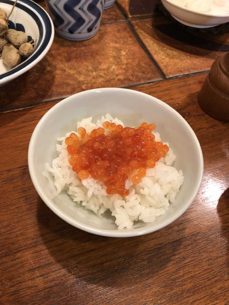 ほぐし生筋子って初めて聞きました。言われたら、そりゃそうだって思うんですけどね。生の筋子は当たり前ですが、鮭のお腹の中にある卵で、薄い膜につつまれてひと塊になっています。普通はそれを自分で膜からはがし、一粒づつほぐすんだけど、それって、面倒そうでしょ?だから、その面倒そうな部分を業者さんがやってくれて、ほぐしたイクラを取り寄せることが出来るんです。これって、一番取れたての鮭から腹から出してほぐしてくれるから、鮮度抜群なんです。なので、タレに漬けないで、醤油をひと垂らしして、鮭の卵かけ御飯で食べちゃうんです。旨いです、全く臭みが無くて、鶏の卵より黄身くさく無いし、さっぱりしてる。初めてだから、ワンパックだけ購入したんですが、次回はもう少し余分に買おうと思います。普通の卵かけご飯も充分美味しいけどね。