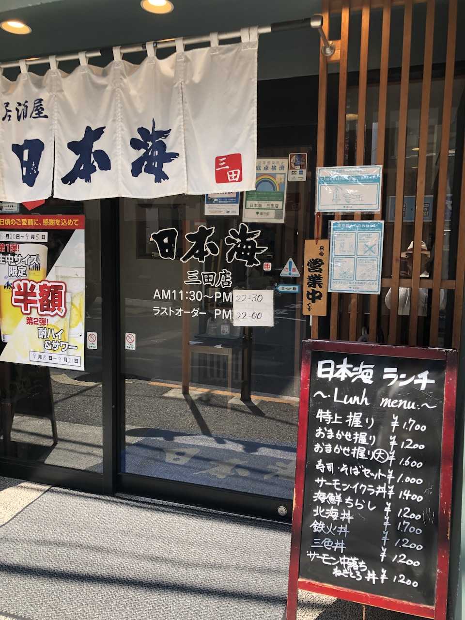 日曜日の田町での勉強会。お昼休みは一時間あります。お昼休みに、お昼ご飯を食べようか、止めようか迷います。座ってるだけだから、そんなにお腹が空かないんです。とりあえず、偵察がてら近所を散策。寿司居酒屋の暖簾を発見。熱いから、とにかく喉を潤さなくっちゃね。ハイボール頼んだら、ジョッキで来ちゃいました!特上握りが1700円って安いですね。ハイボールに、宮城産上穴子天ぷら、いっちゃおうかな。アオヤギや煮ハマグリもあります。江戸前新子330円って、ホント?穴子天、旨いです。穴子が身厚で柔らかく、臭みも全くない。勿論揚げたてで、しかもボリューム満点。衣が付きすぎなのが残念、折角の穴子が勿体ないな~。半分剥がして食べました。特上寿司もイイ感じです。酢飯を少な目にしてもらって、普通サイズの量でした。中トロとサーモンが、脂乗り過ぎで困りましたが、他は美味しく食べられました。鉄火の芯の太さのばらつきが笑えますが、太いのがサービスと思えば嬉しい。少なく頼んだ酢飯がまだ多く、天ぷらが食べきれなかったのが勿体なかった。午後から、勉強会が無ければ、お持ち帰りして、新幹線の中で酒の肴にしたんだけどな。