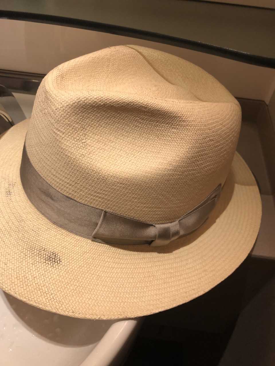七月、雨の日に、名古屋の三越前でタクシーを拾おうとして走ったら泥に脚を取られてスッテンコロリン。側頭部と肘と骨盤を強く打ち、帽子とシャツとズボンとバッグが泥だらけになってしまいました。すぐに洗ったんですが、リボンと鍔に黒い泥が入り込んでどうにも綺麗に成らず、買い求めた大阪の文二郎帽子店に持って行って洗ってもらうこと。綺麗に洗って、リボンは取り換え、二か月ほどお待ちください。と。八月、九月と過ぎて、予定通り二か月経ち帽子が送り返されて来ました。ちょっと見、何処が汚れているか判らないでしょ?おじさんは、何処が汚れていたか判っていますから、そこに目がいきますが、知らない人が注意を向けるような跡ではありません。良かった~、まだまだ大切に使えます。バッグもクリーニング屋さんから専門店へ出してもらってやっぱり戻ってくるのに二か月。白い繊維に入り込んだ黒、やはり残ってしまいましたが、こちらも殆ど判らず綺麗になりました。死ぬまで使えそうです。ついでに、今、どうしようか迷ってるトランク。1999年に購入。(お店の人が購入履歴を調べて教えてくれた。)二十年以上続いた、年に一回のアメリカ旅行を初め、海外旅行、ドライブ旅行など、二泊以上の旅にはいつも使用していました。下に置いた時に皮が汚れないように付いてるゴム製の土台って言うのかな?ゴムが硬くなって割れてしまいました。一旦割れると、そこからボロボロ砕けていくそうです。機内持ち込みサイズで便利ですが、最近は、コロコロ引っ張って歩けるトランクの使用頻度が上がってきて、手で持ったり、肩にかけるこの出番は減ってきています。修理しようか迷っています。日本人二人目!!天晴!!三人目は今年こそ文学賞?