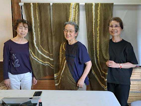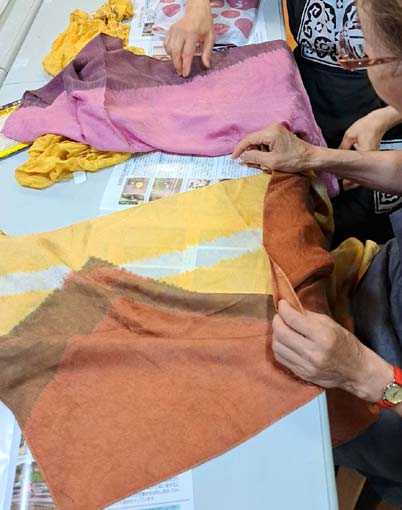 10数年前に能登の工房で絞った絹ストールを持ってきてくれたので観賞(^^
