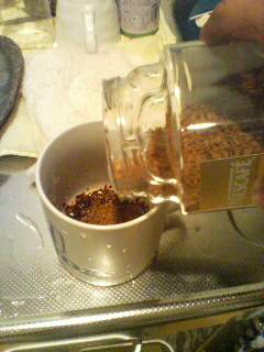 かき混ぜません。お湯だけで結構溶けてくれます。