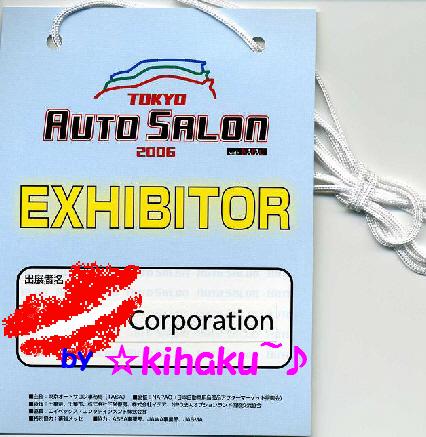 平成18年 1月14日(土) 旧暦12月15日 一粒万倍日 明日の予定 東京オ-トサロン2006 with NAPAC 私くしの パス で御座います。 出展者名は、お許しあれ!!!ぼう。。。チュ-ニングパ-ツメ-カ-です。 ※注)取引先でありまして…決して…コンパニオンで行く訳では有りません…念のため! 。。。 しかし・・・カメラ小僧 & カメラおやじ に 一言 。。。 ☆彡kihaku~♪さんは、撮影禁止です!!!。☆⌒(*^-゜)v コンパニオンさんの 笑顔 に 脱帽 。。。 一日いると疲れるんだわ これが (。´_`)ノ です♪ 。。。 ★彡気ままに Photos★彡
