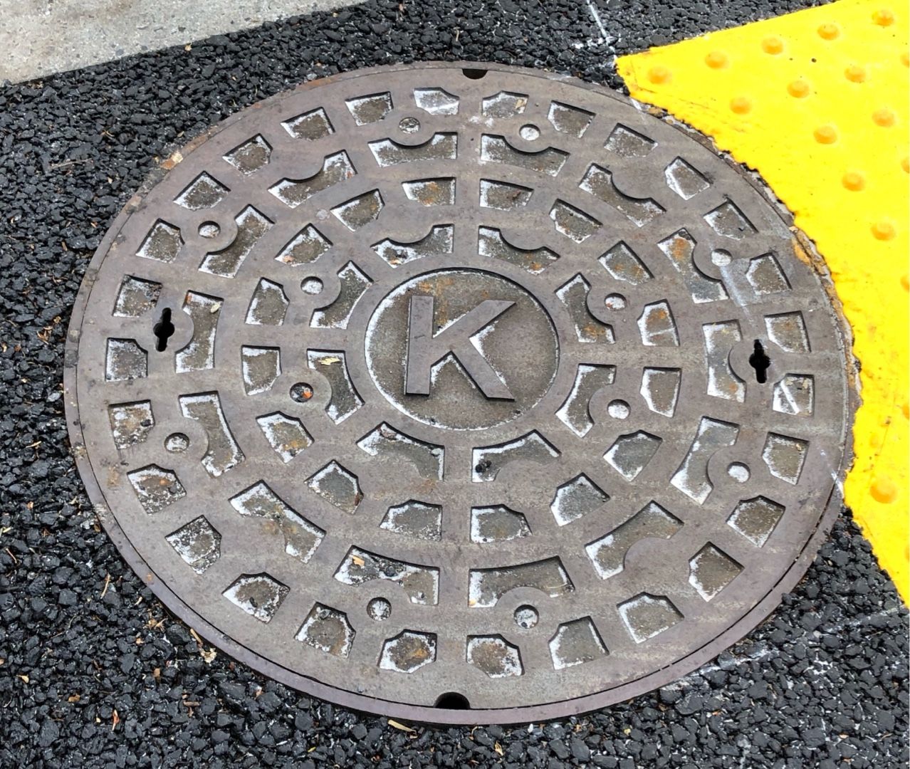 信濃町駅前には慶応大学病院があって、マンホールの蓋が慶応の