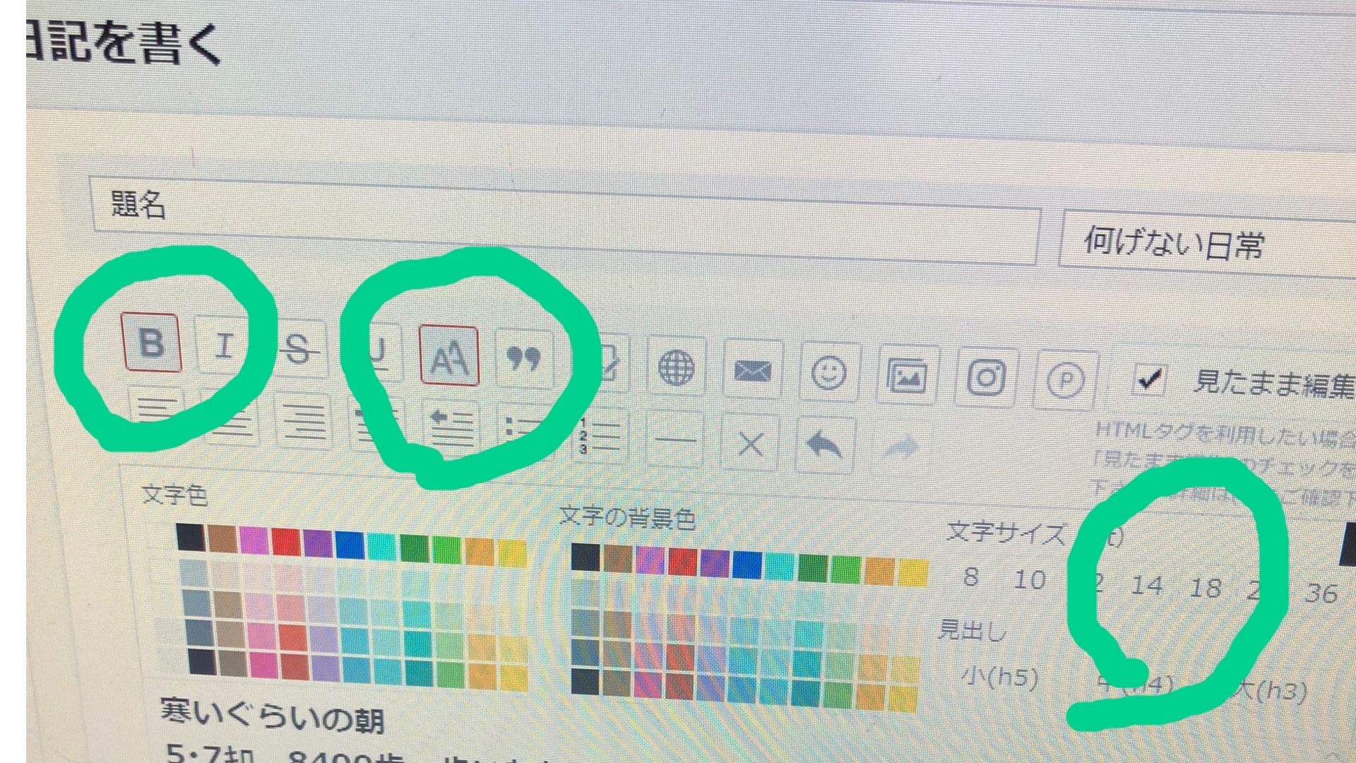 ​私のブログの文字は 太字で、文字のポイントは14 で書き込んでい