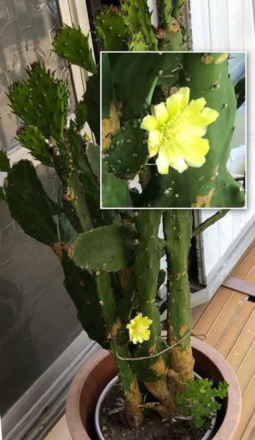 ベランダに置いてあるウチワサボテンに「一つだけの花」
