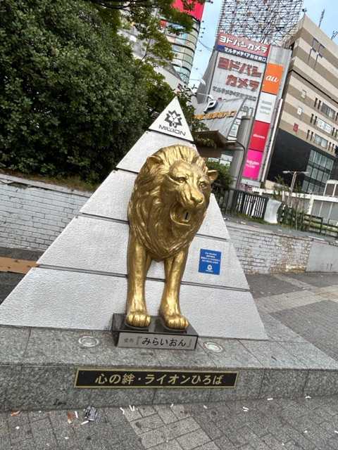 東口を出ると「ライオン広場」がありますが、