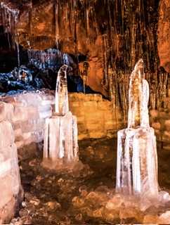 「天然の冷蔵庫」とも呼ばれて、氷柱が幻想的に輝きます。