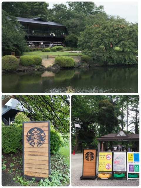新宿御苑内のスターバックスで、こんな風景を眺めながら