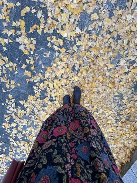 イチョウは散り始めていて、落ち葉の絨毯は黄色一色