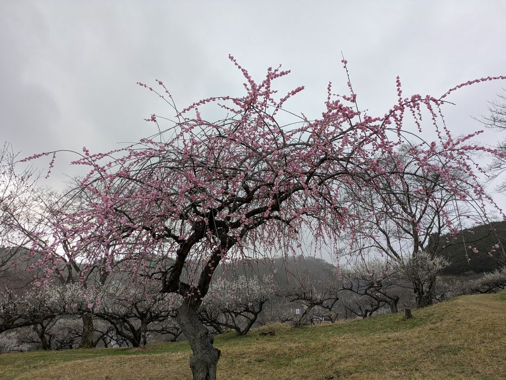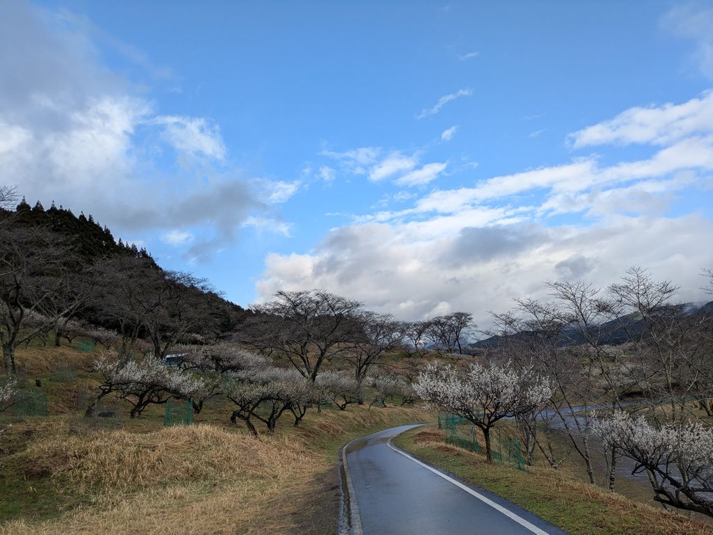 途中の道沿いでは、咲いている梅もあれば、すでにすっかり終わっている梅もあるようだ。