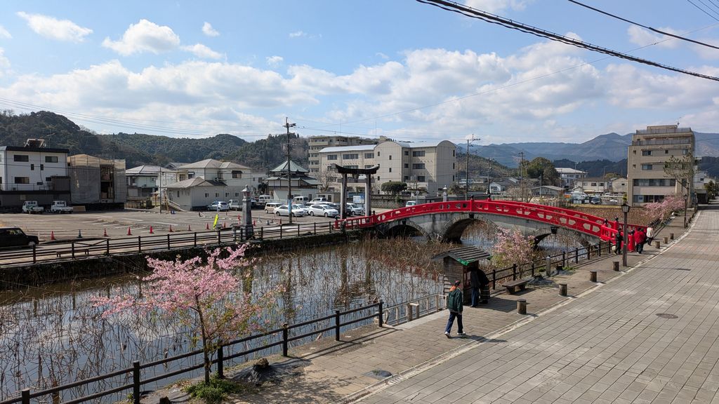 人吉城にある神社では河津桜が咲いてました。